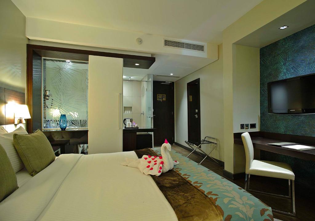 This air-conditioned room is elegantly decorated and includes a flat-screen TV, tea-and-coffee making facilities and small fridge. There are views of the swimming pool and lush gardens. The bathrooms features a rain shower. This room also comes with a free handy phone for free local and selected international calls.