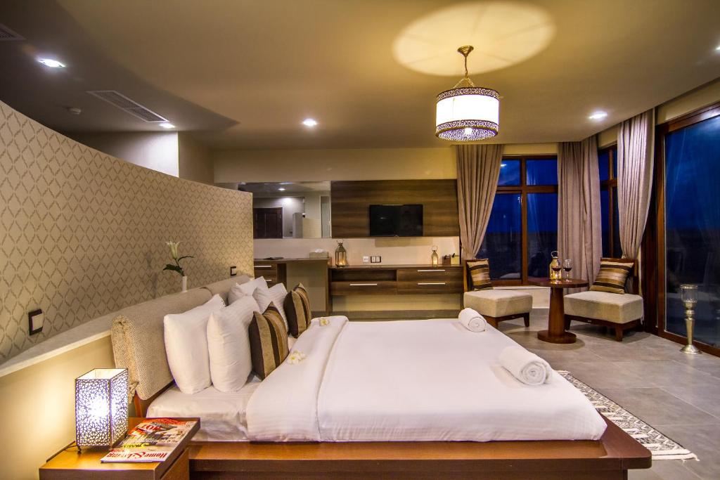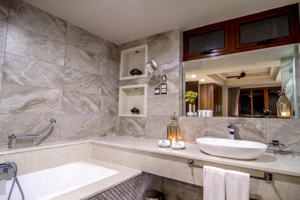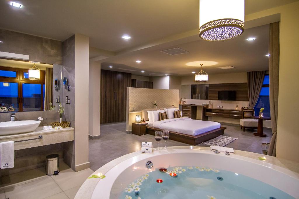 The Penthouse units are fitted with air conditioning, a seating area, a flat-screen TV with satellite channels, a kitchen, a dining area, a safety deposit box and a private bathroom with a walk-in shower. Each unit has a balcony and a patio with sea views and an outdoor dining area.