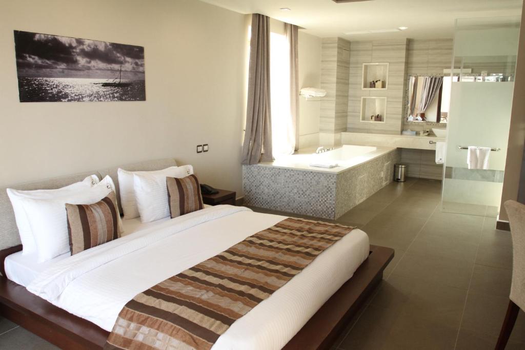Our spacious Standard Rooms are the largest of this room type in Mombasa. The rooms are modern with a charming earthy décor and are bathed in natural light to create a relaxing ambience. Maximum 2 Adults. Fitted with a flat-screen TV with satellite channels, Free internet access, Electric Fan, Air conditioning (AC), a private bathroom with a walk-in shower, kattle and a microwave.